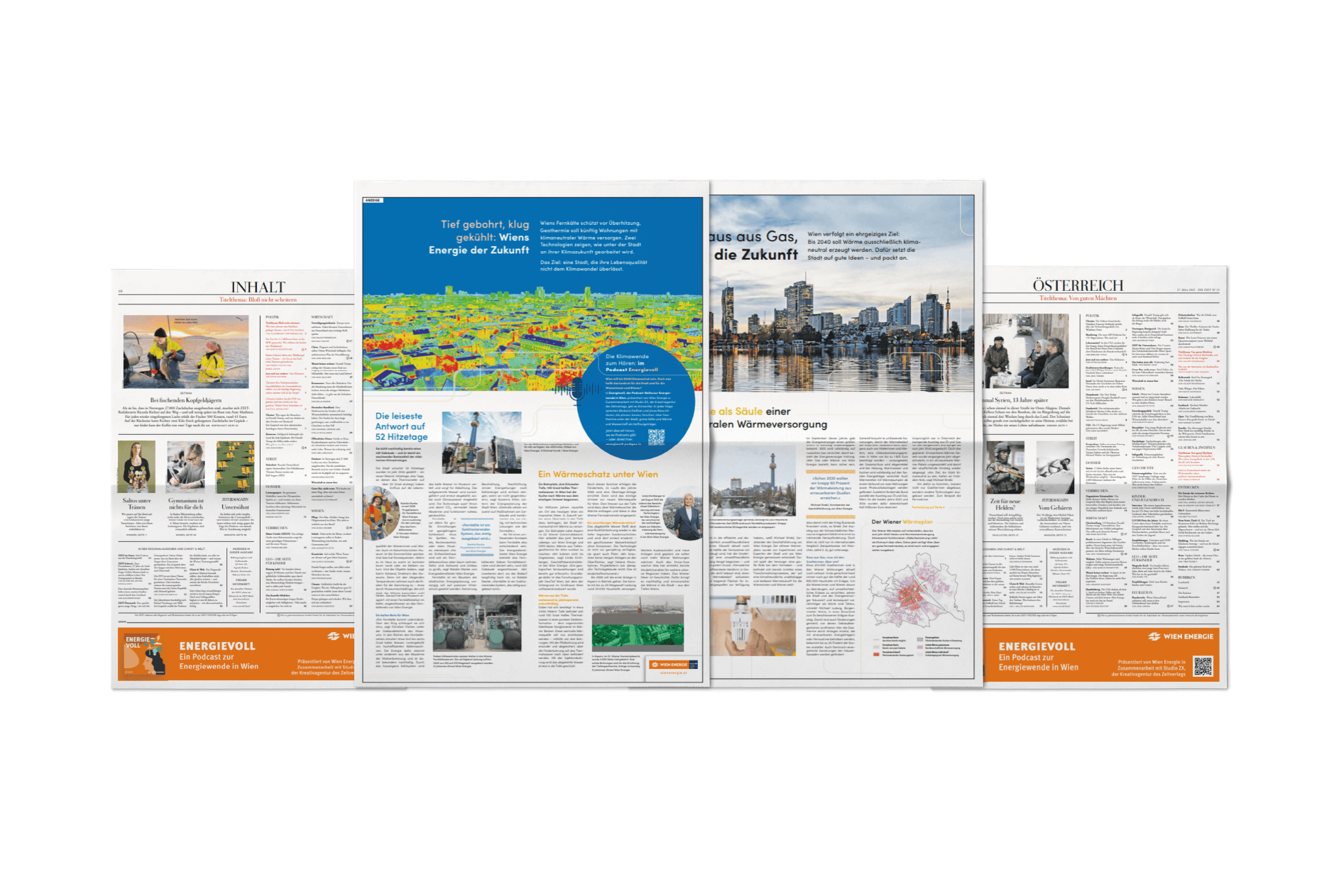 Journalistische Tiefe mit kreativer Erzählkraft: Im Zentrum der Kampagne steht der von Studio ZX produzierte Podcast »Energievoll«. In fünf Folgen führen Barbara Fleißner und Jonas Ross durch die Energiezukunft Wiens – mit Geschichten von den Dächern der Stadt, aus Forschungseinrichtungen, von Bohrfeldern oder unterirdischen Fernwärmeleitungen.